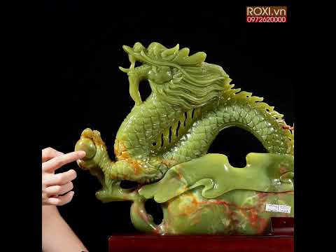 Tượng rồng được chế tác từ ngọc onyx tự nhiên, qua quá trình chạm khắc tỉ mỉ và sự tận tâm của người nghệ nhân: từng đường nét uốn lượn, từng vảy rồng được chạm khắc sắc nét, sống động, các chi tiết nhỏ như móng vuốt rồng, râu rồng cũng được chau chuốt tỉ mỉ tạo nên vẻ đẹp uy nghi và mạnh mẽ.