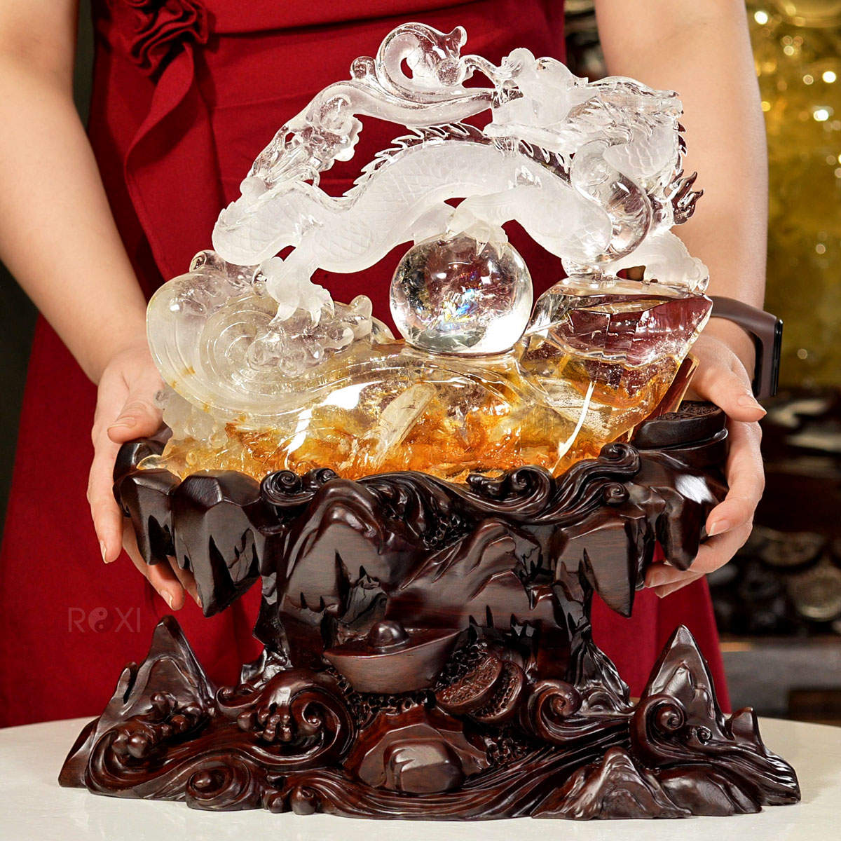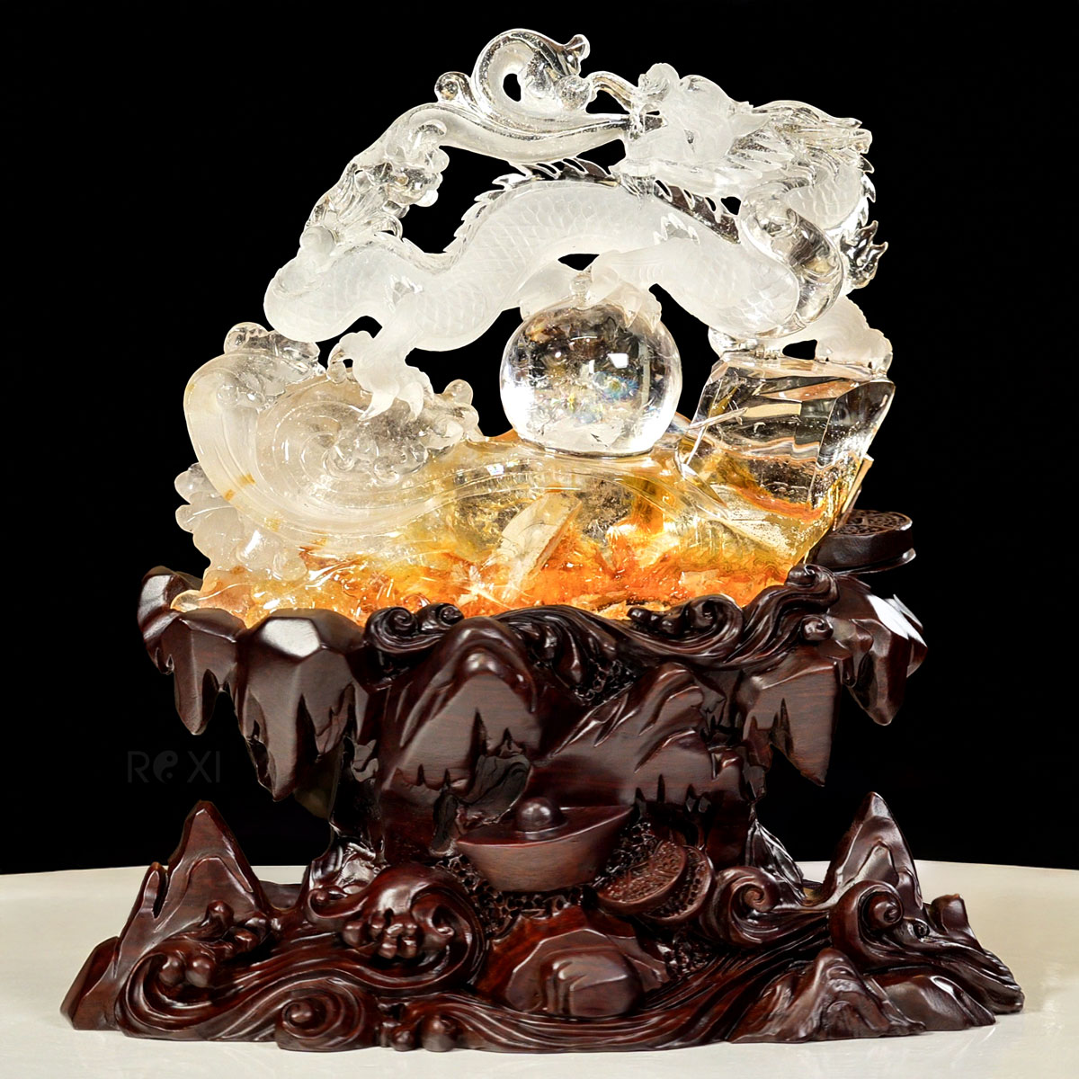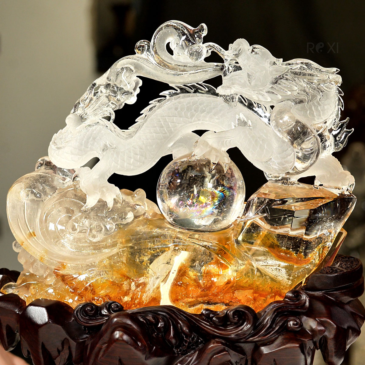 Tượng rồng phong thủy bằng thạch anh ưu linh tự nhiên là tác phẩm độc đáo mang giá trị sưu tầm và phong thủy cao.