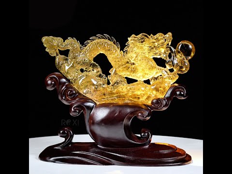 Tượng rồng thạch anh vàng tự nhiên nguyên khối