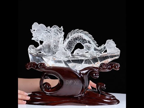 Tượng rồng bằng đá thạch anh được chế tác từ thạch anh tự nhiên, qua quá trình chạm khắc tỉ mỉ và sự tận tâm của người nghệ nhân: từng đường nét uốn lượn, từng vảy rồng được chạm khắc sắc nét, sống động, các chi tiết nhỏ như móng vuốt rồng, râu rồng cũng được chau chuốt tỉ mỉ tạo nên vẻ đẹp uy nghi và mạnh mẽ.