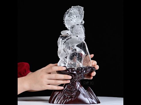 Tượng rồng bằng đá thạch anh được chế tác từ thạch anh tự nhiên, qua quá trình chạm khắc tỉ mỉ và sự tận tâm của người nghệ nhân: từng đường nét uốn lượn, từng vảy rồng được chạm khắc sắc nét, sống động, các chi tiết nhỏ như móng vuốt rồng, râu rồng cũng được chau chuốt tỉ mỉ tạo nên vẻ đẹp uy nghi và mạnh mẽ.