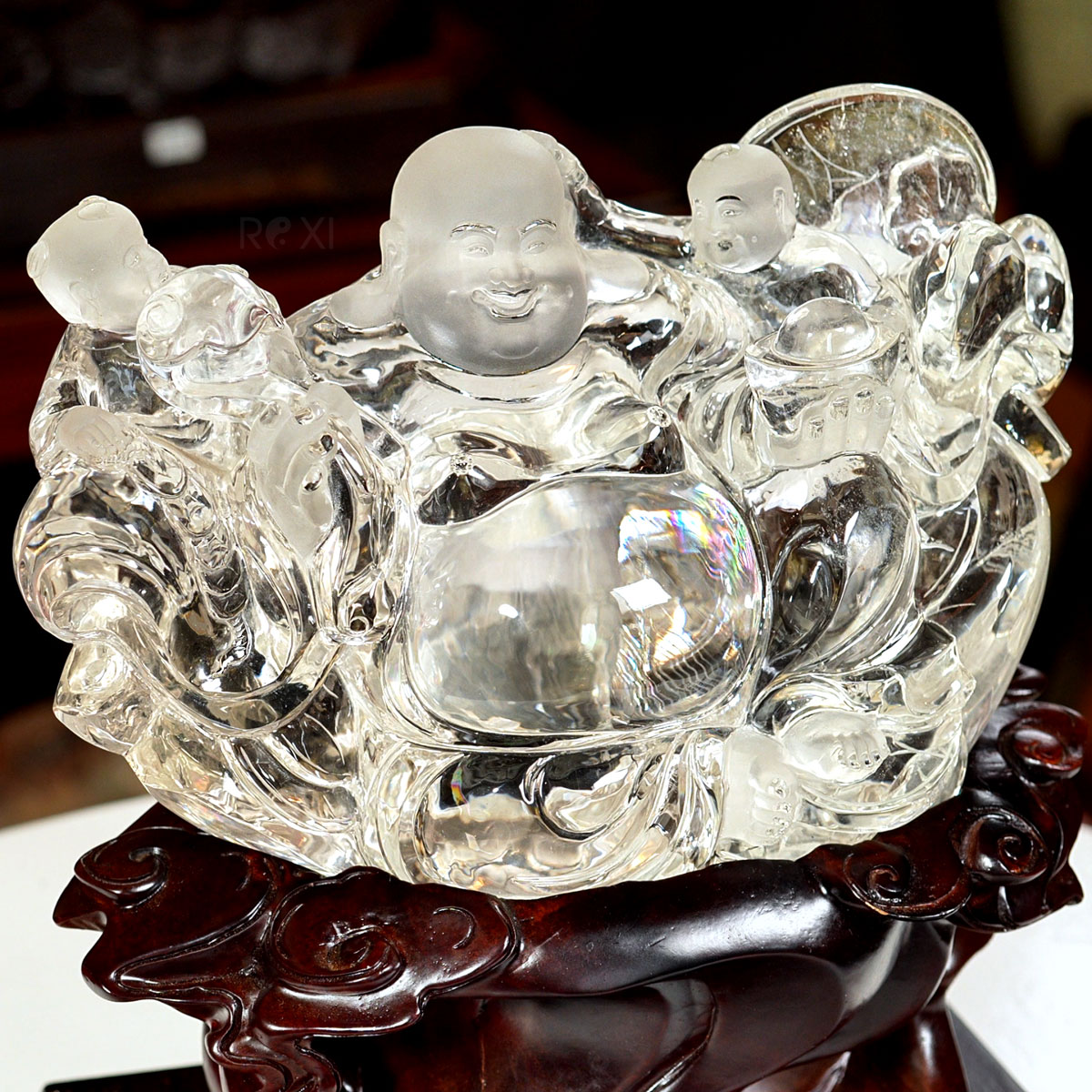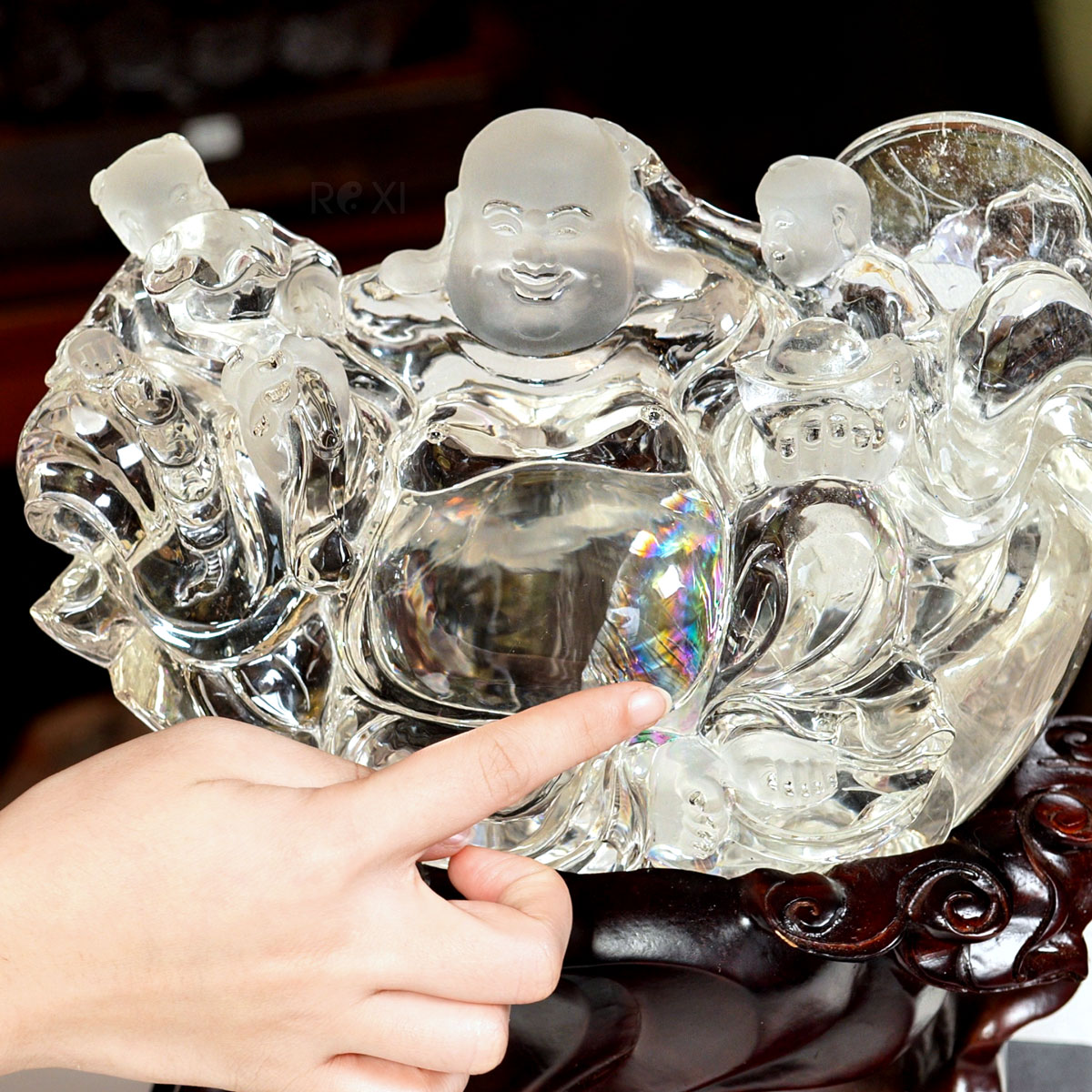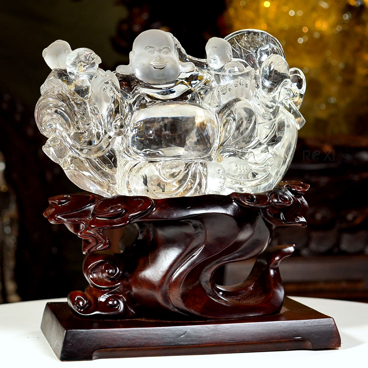 Tượng Phật Di Lặc đá thạch anh VIP, phôi đá đạt độ trong và độ tinh khiết cao, ánh hào quang 7 sắc lấp lánh và nổi bật. Tác phẩm có giá trị sưu tầm cao, quý hiếm và độc bản, đây cũng là tác phẩm được chọn làm quà tặng phong thủy cao cấp.