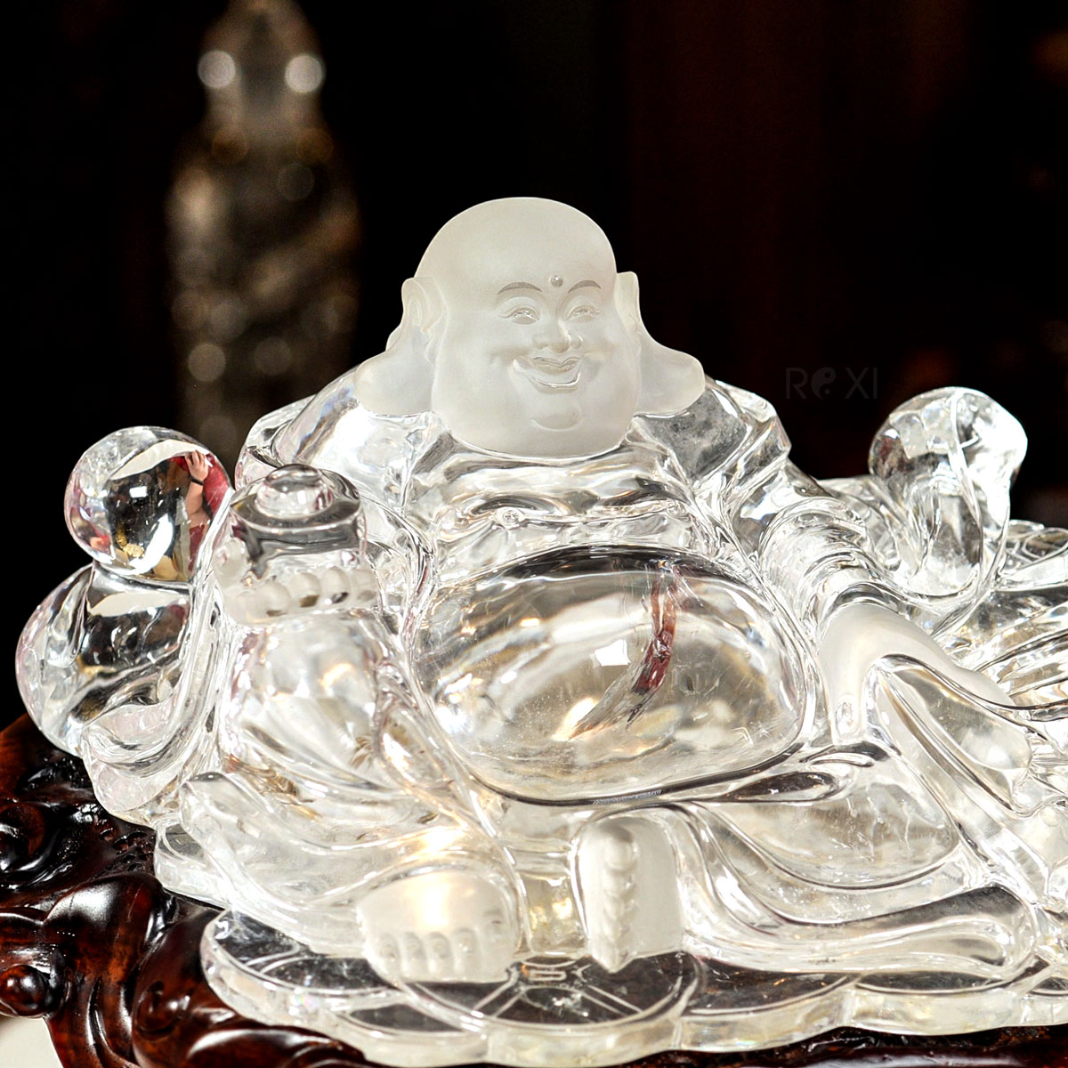 Tượng Phật Di Lặc đá thạch anh VIP, phôi đá đạt độ trong và độ tinh khiết cao, Tác phẩm có giá trị sưu tầm cao, đây cũng là tác phẩm được chọn làm quà tặng phong thủy cao cấp.