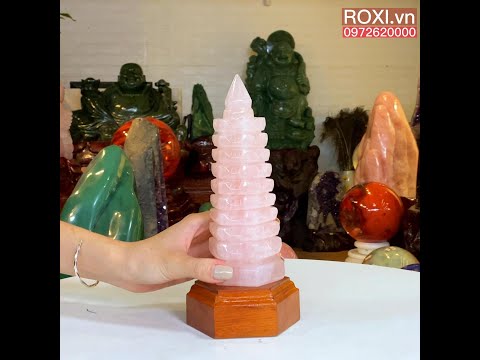 - Tháp văn xương thạch anh hồng tự nhiên nguyên khối