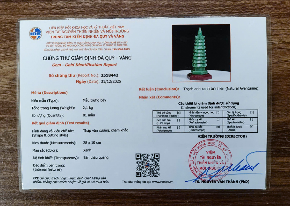- Tháp văn xương thạch anh xanh tự nhiên.