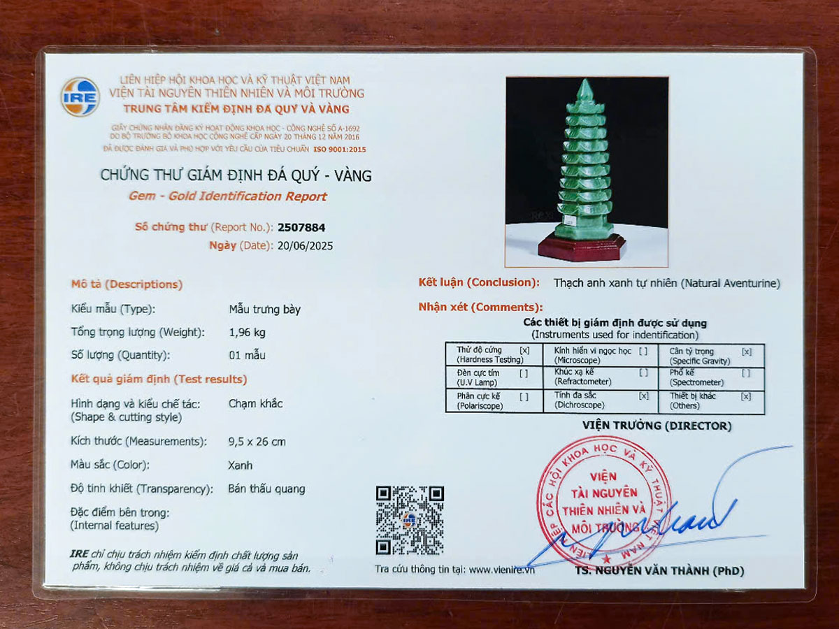 - Tháp văn xương thạch anh xanh tự nhiên.