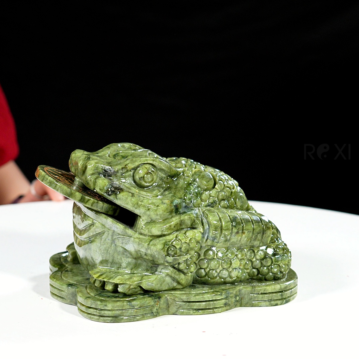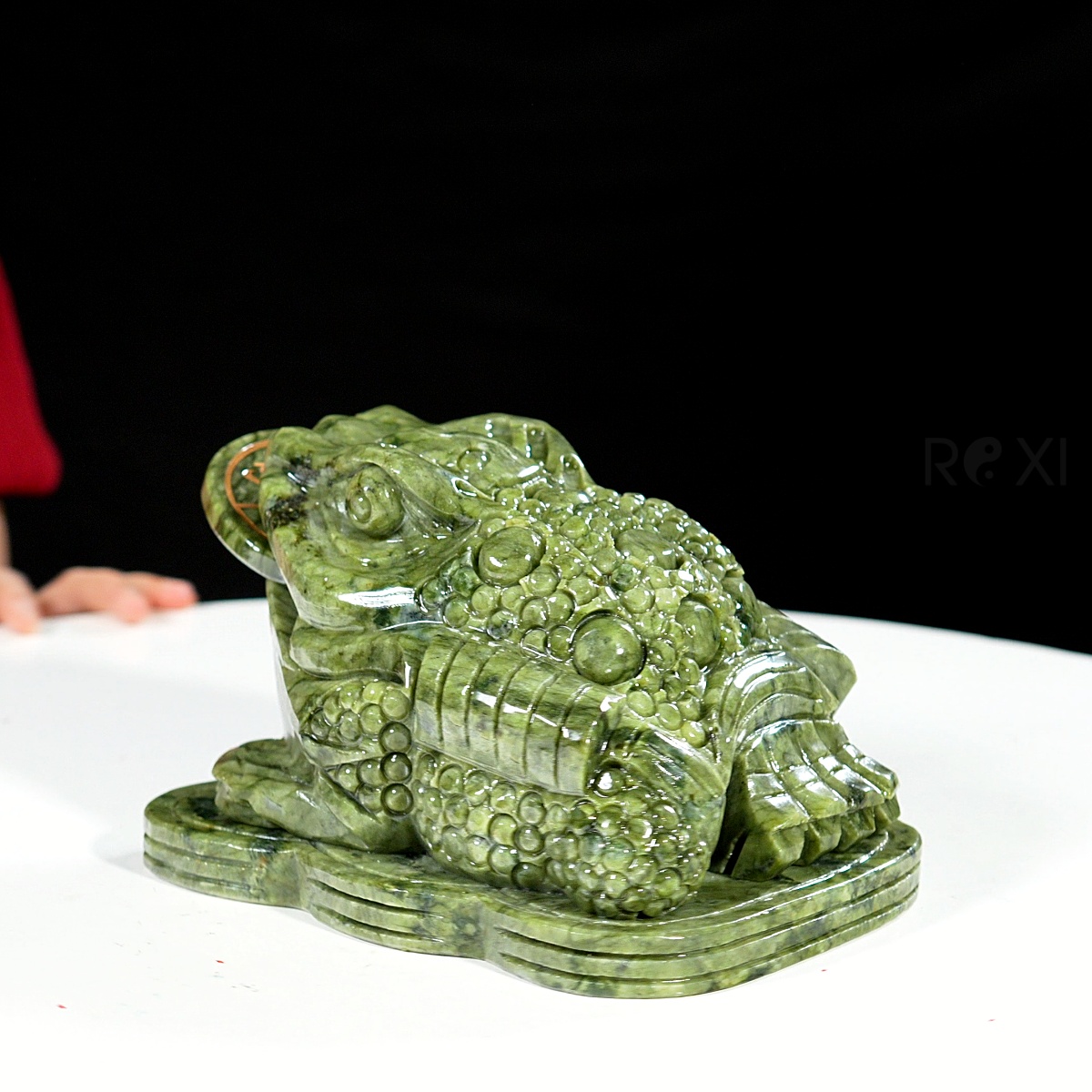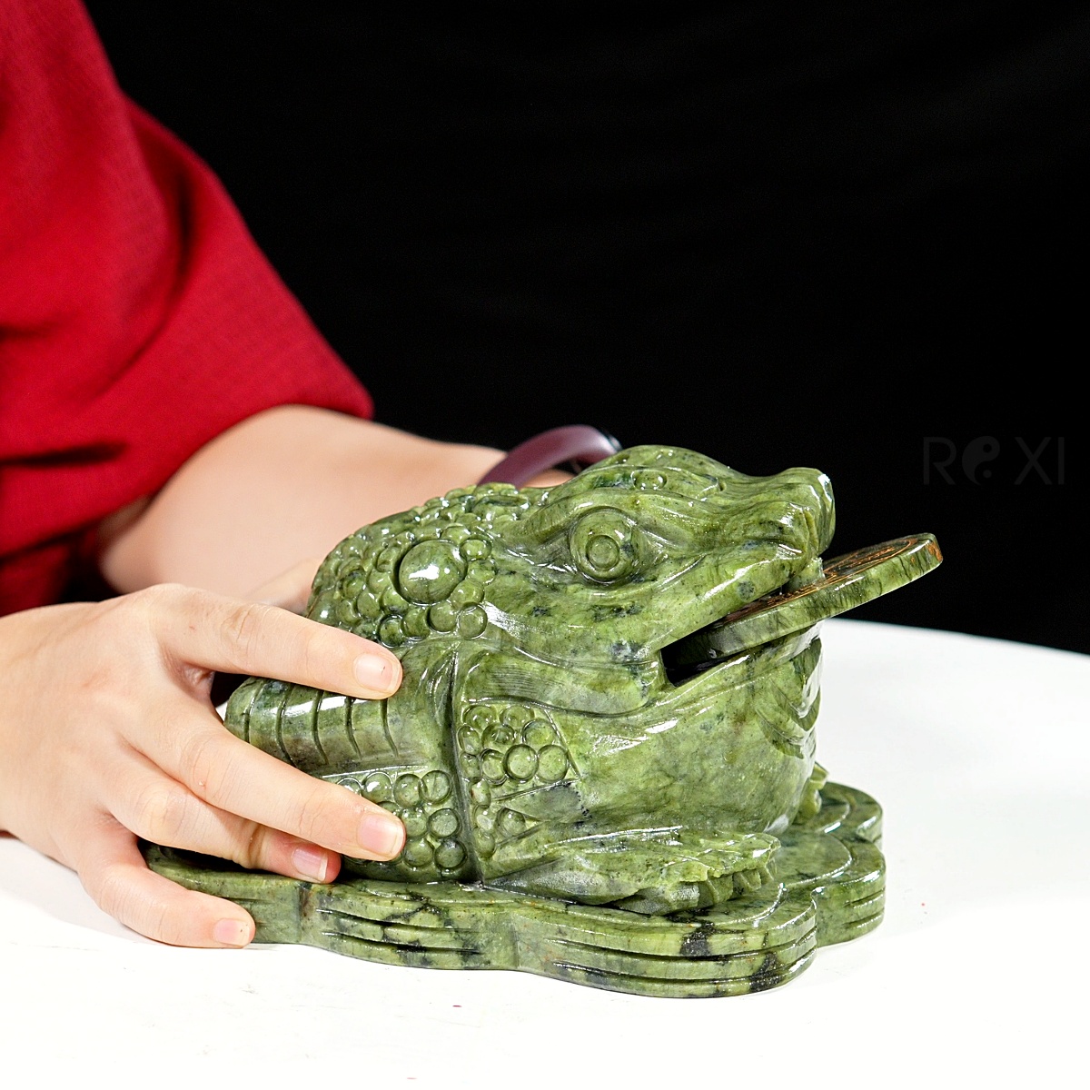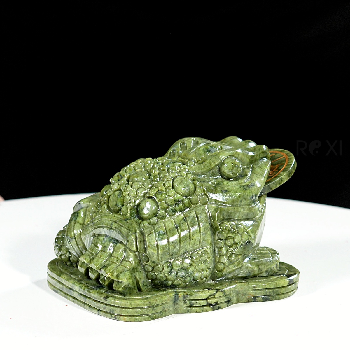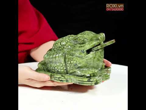 - Thiềm thừ cóc tài lộc được chế tác từ đá serpentine tự nhiên nguyên khối.