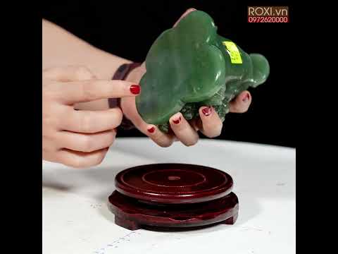 - Thiềm thừ cóc tài lộc được chế tác từ thạch anh xanh tự nhiên nguyên khối
