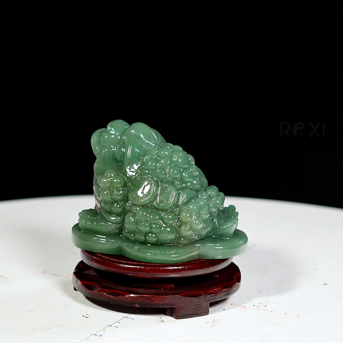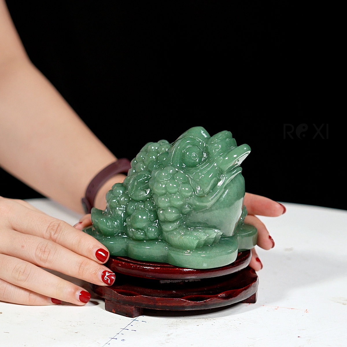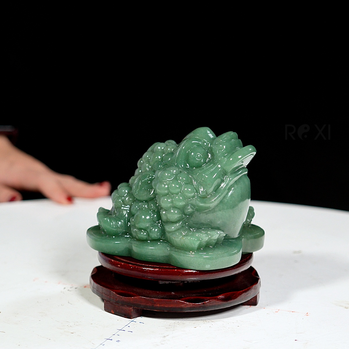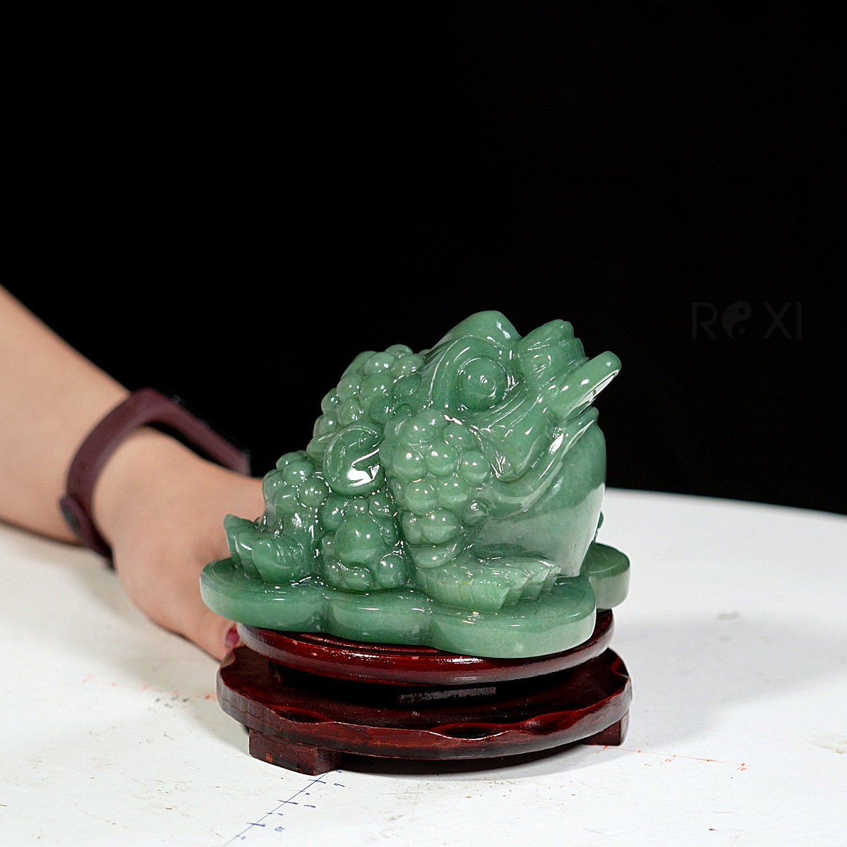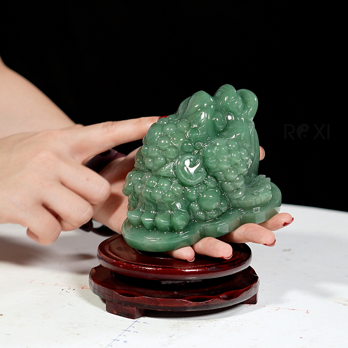 - Thiềm thừ cóc tài lộc được chế tác từ thạch anh xanh tự nhiên nguyên khối