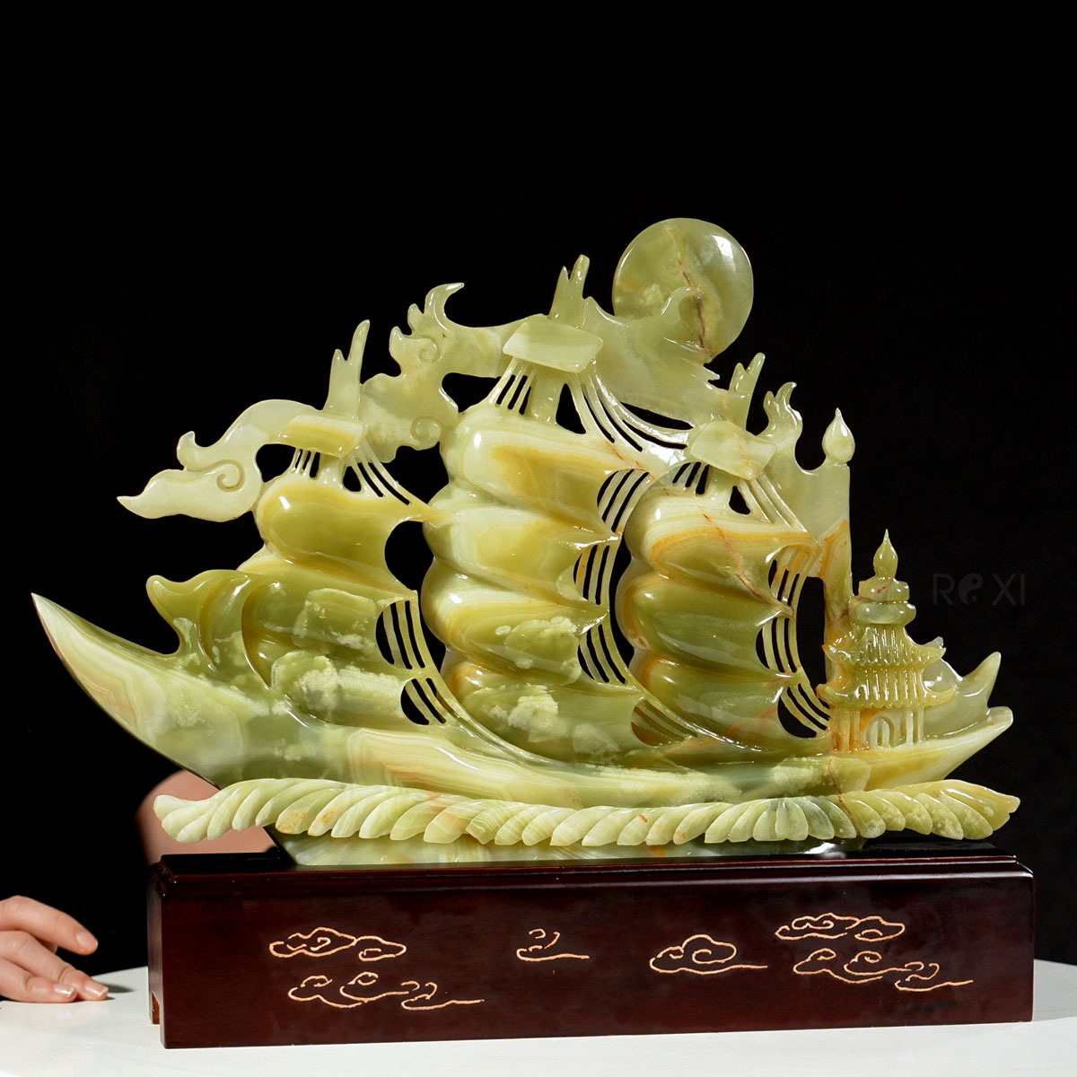 Thuyền buồm - Thuận buồm xuôi gió ngọc onyx xanh 43cm (6)