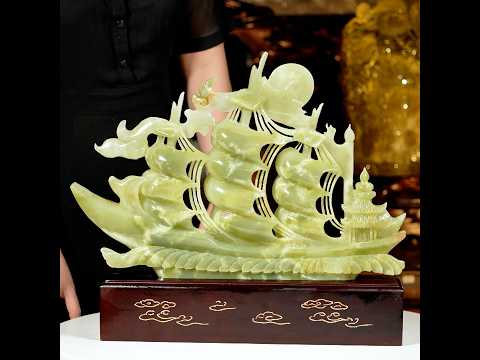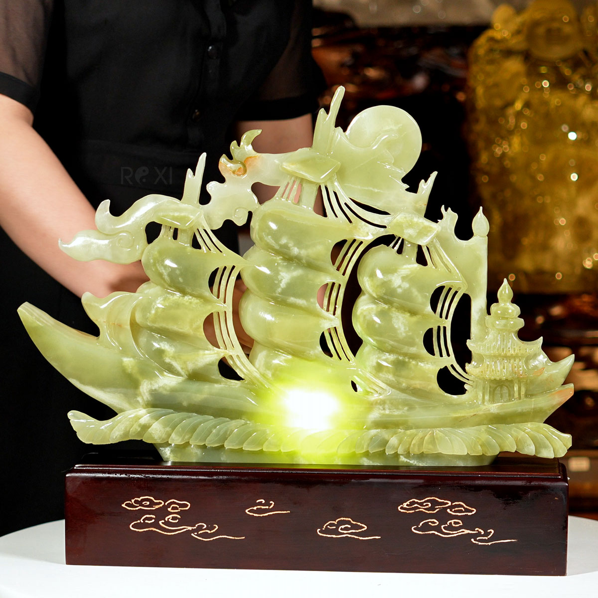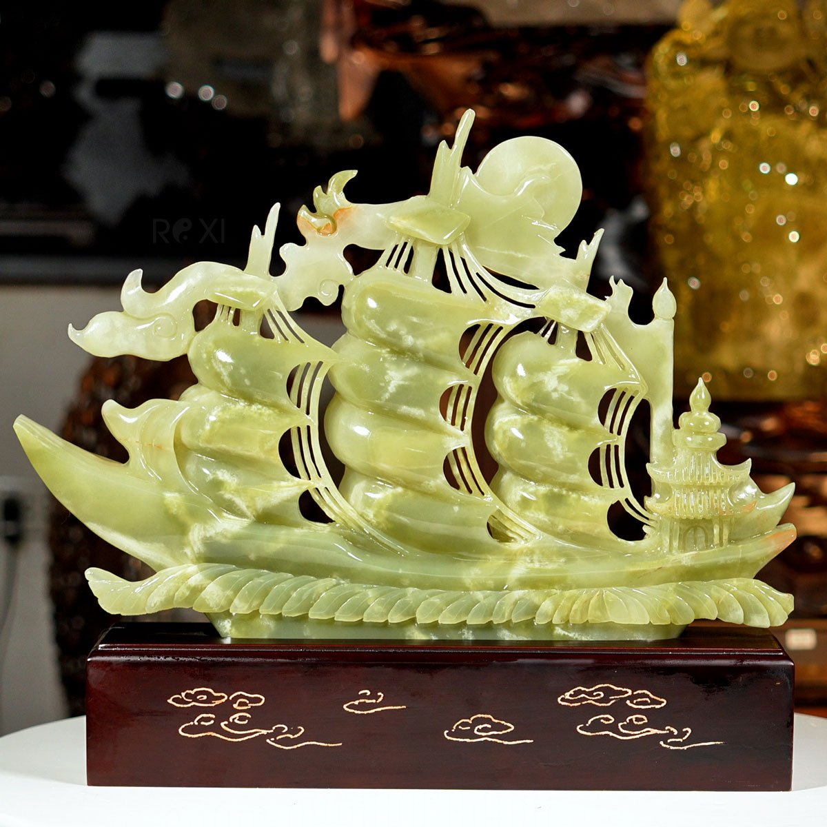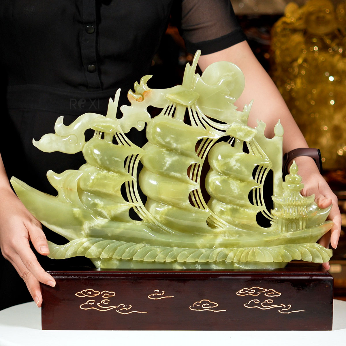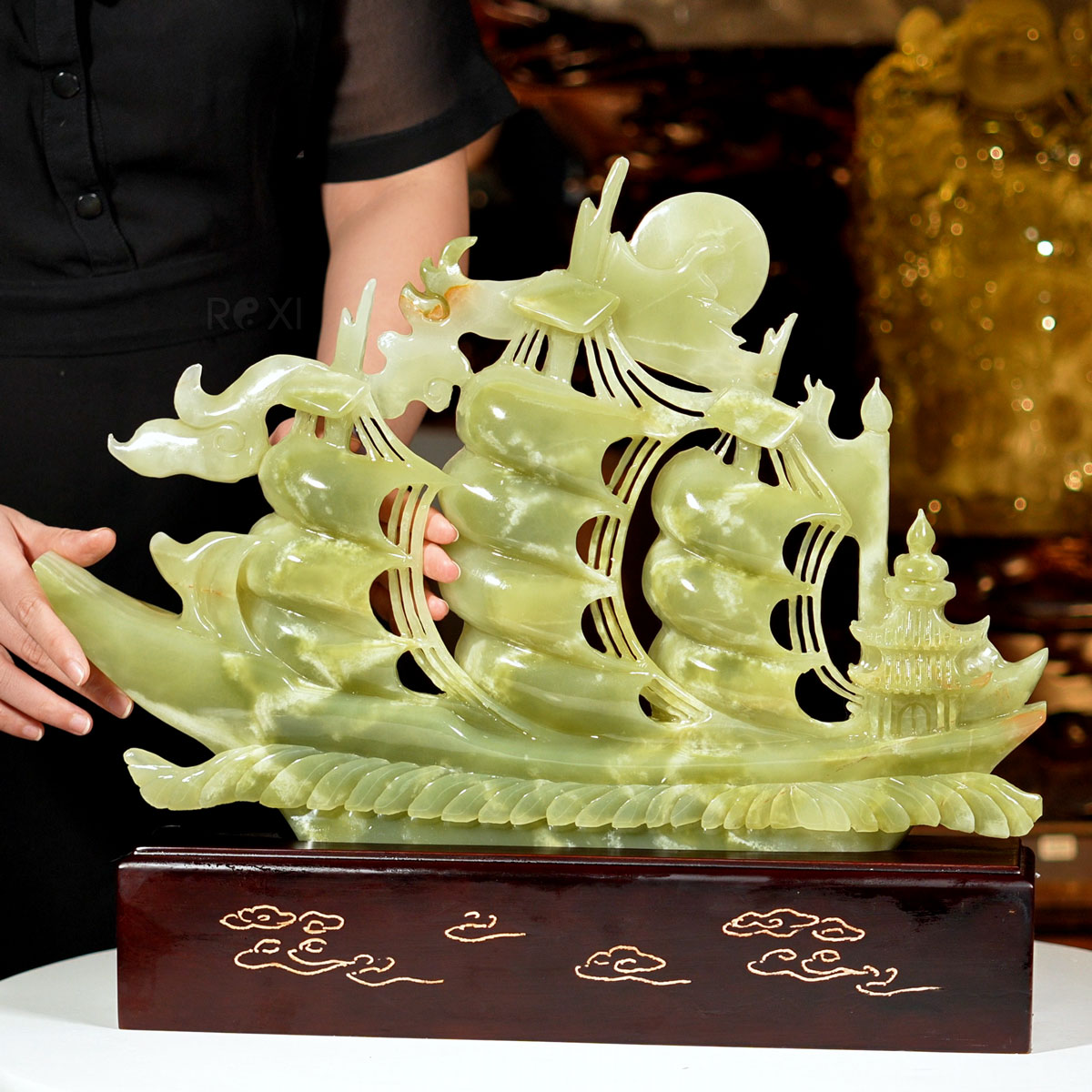 Tác phẩm thuyền buồm được chế tác từ ngọc tự nhiên, là một món quà tặng phong thủy ý nghĩa thay những lời chúc về sự bình an, may mắn, thịnh vượng và tài lộc.