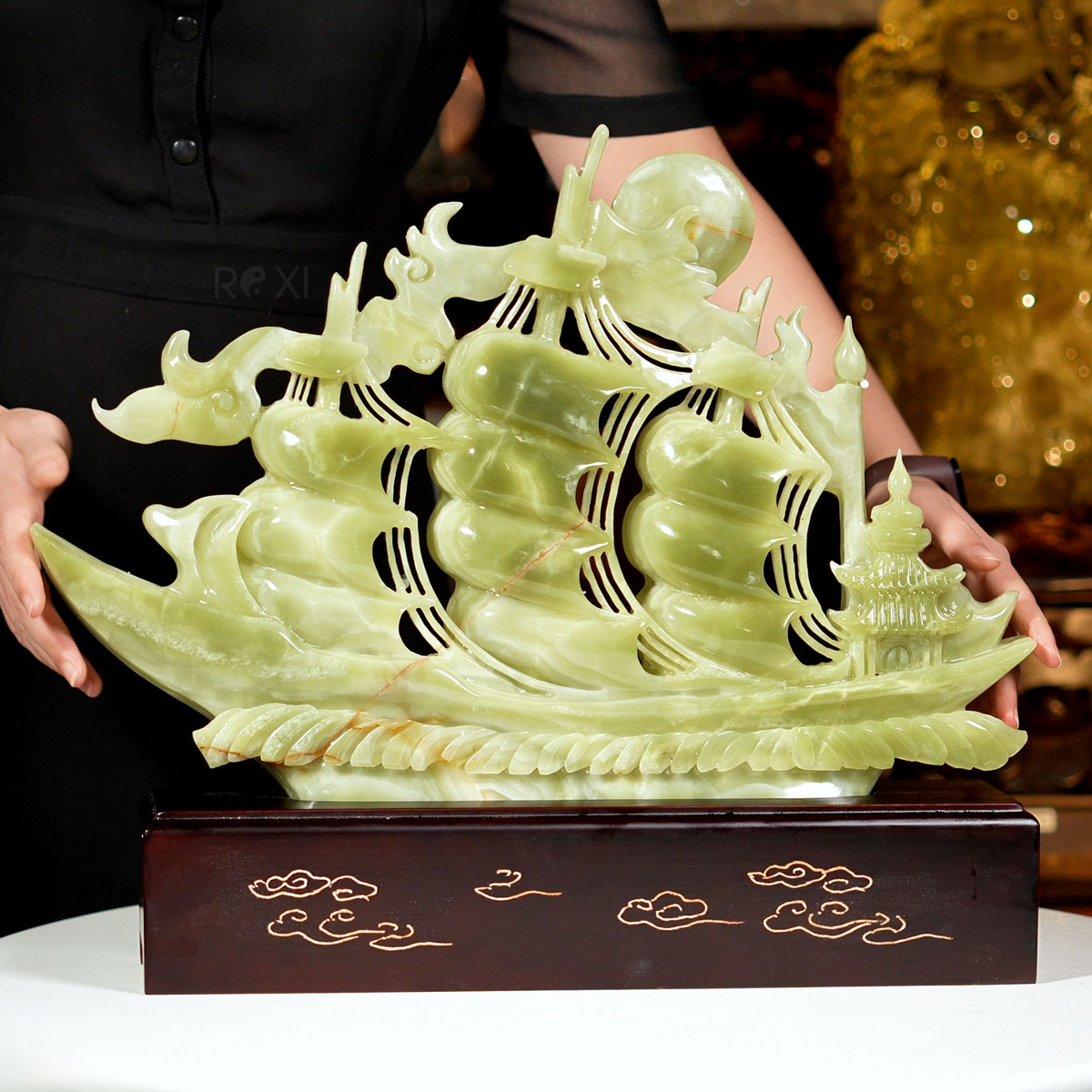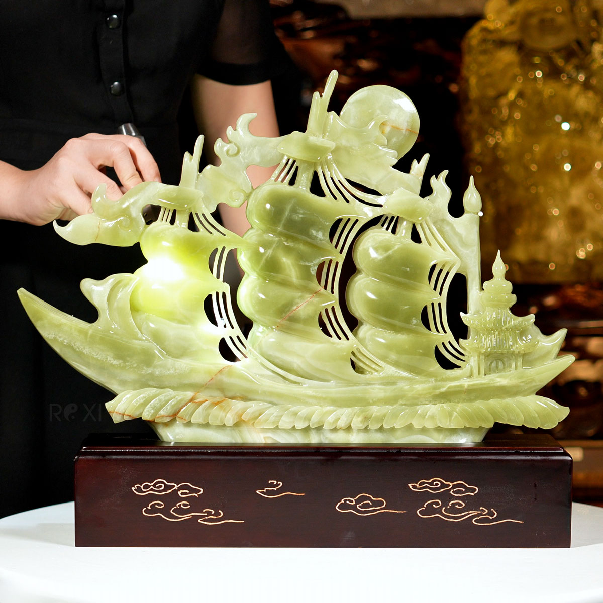 Tác phẩm thuyền buồm được chế tác từ ngọc tự nhiên, là một món quà tặng phong thủy ý nghĩa thay những lời chúc về sự bình an, may mắn, thịnh vượng và tài lộc.