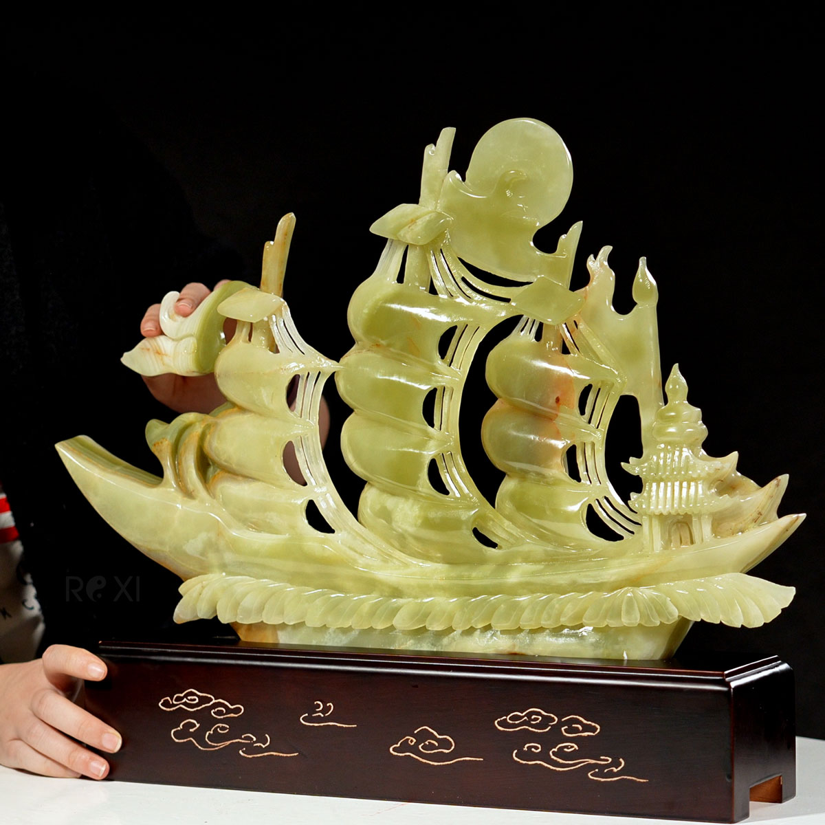 Tác phẩm thuyền buồm được chế tác từ ngọc tự nhiên, là một món quà tặng phong thủy ý nghĩa thay những lời chúc về sự bình an, may mắn, thịnh vượng và tài lộc.