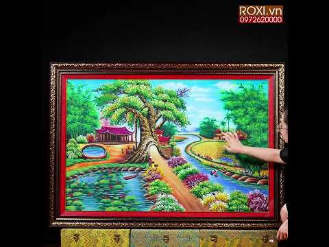 Tranh đá quý phong cảnh làng quê với hình ảnh ''cây đa - giếng nước - sân đình'' là biểu tượng hướng về cội nguồn đầy ý nghĩa và thiêng liêng trong đời sống của người Việt.
