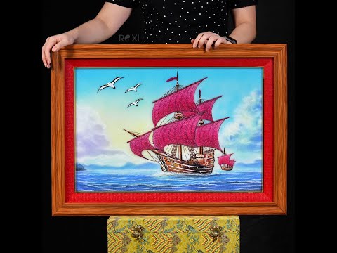 Hình ảnh con thuyền buồm căng gió, lướt nhẹ trên mặt nước trong vắt, tượng trưng cho sự thuận lợi, may mắn và thành công. Những cánh buồm đỏ rực nổi bật giữa cảnh sắc thiên nhiên, tạo nên điểm nhấn mạnh mẽ và ấn tượng.