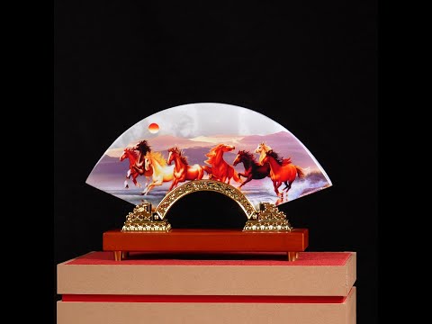 Tranh ngọc mã đáo thành công là tác phẩm nghệ thuật độc đáo được in phun 3D hình ảnh mã đáo thành công trên miếng bạch ngọc màu trắng hình quạt, bên dưới là chiếc đế gỗ kết hợp với giá đỡ mạ đồng tạo nên một tác phẩm đẹp, sang trọng đồng thời mang giá trị về phong thủy, là món quà tặng phong thủy ý nghĩa.