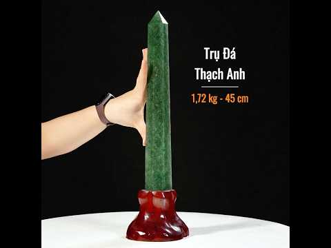 Trụ thạch anh xanh được chế tác từ đá thạch anh xanh tự nhiên nguyên khối, với hình dáng trụ thẳng đứng, phần đế rộng vững chãi, càng lên cao trụ càng thu hẹp lại và có đỉnh trụ nhọn, đồng thời trụ được mài phẳng 6 cạnh và 6 mặt đá với nhiều tác dụng phong thủy.