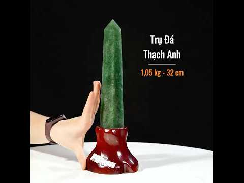Trụ thạch anh xanh được chế tác từ đá thạch anh xanh tự nhiên nguyên khối, với hình dáng trụ thẳng đứng, phần đế rộng vững chãi, càng lên cao trụ càng thu hẹp lại và có đỉnh trụ nhọn, đồng thời trụ được mài phẳng 6 cạnh và 6 mặt đá với nhiều tác dụng phong thủy.