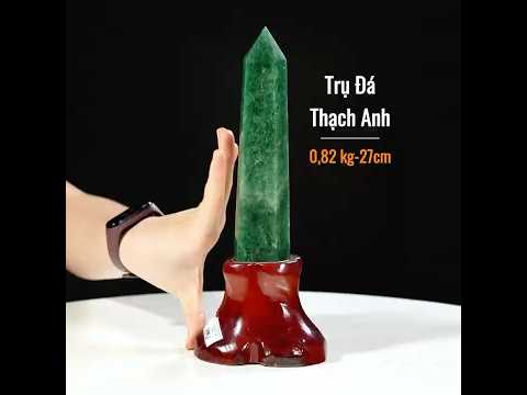 Trụ thạch anh xanh được chế tác từ đá thạch anh xanh tự nhiên nguyên khối, với hình dáng trụ thẳng đứng, phần đế rộng vững chãi, càng lên cao trụ càng thu hẹp lại và có đỉnh trụ nhọn, đồng thời trụ được mài phẳng 6 cạnh và 6 mặt đá với nhiều tác dụng phong thủy.