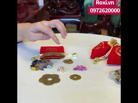 Túi đỏ tài lộc gồm 9 viên ngọc trai tự nhiên + viên đá thạch anh 5 màu + 2 đồng hoa mai kim + đá quý ruby + hổ phách tự nhiên tiền với ý nghĩa chiêu tài, hút lộc, trừ tà, mang lại may mắn, thuận lợi cho gia chủ.