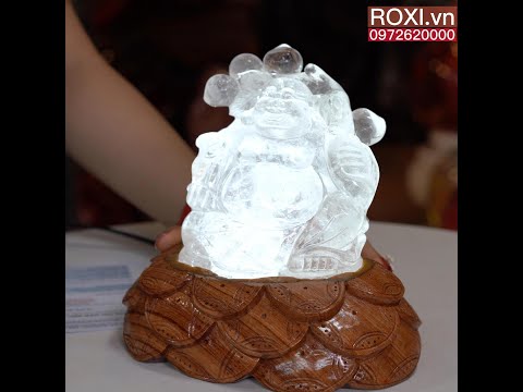 Tác phẩm Tượng Phật Di Lặc đá thạch anh trắng với kích thước nhỏ phù hợp để đặt trên xe oto, trên bàn làm việc, các kệ tủ để cầu sự bình an trong di chuyển cũng như sự may mắn hoan hỉ tài lộc mà vị Phật này gia hộ cho chúng sinh.