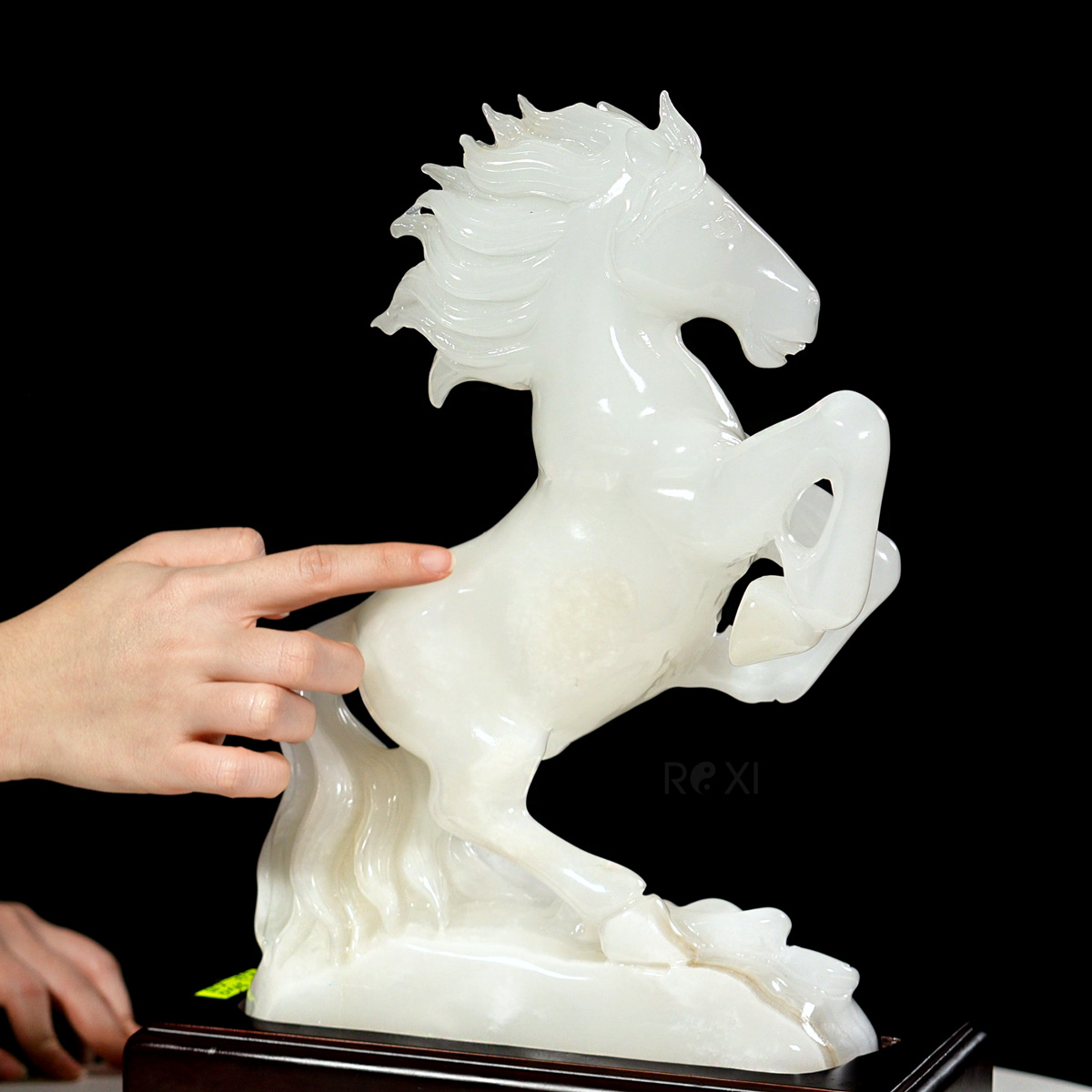 Tượng ngựa đá phong thủy được chế tác từ ngọc tự nhiên nguyên khối, tác phẩm kèm chứng thư kiểm định và hộp đẹp.
