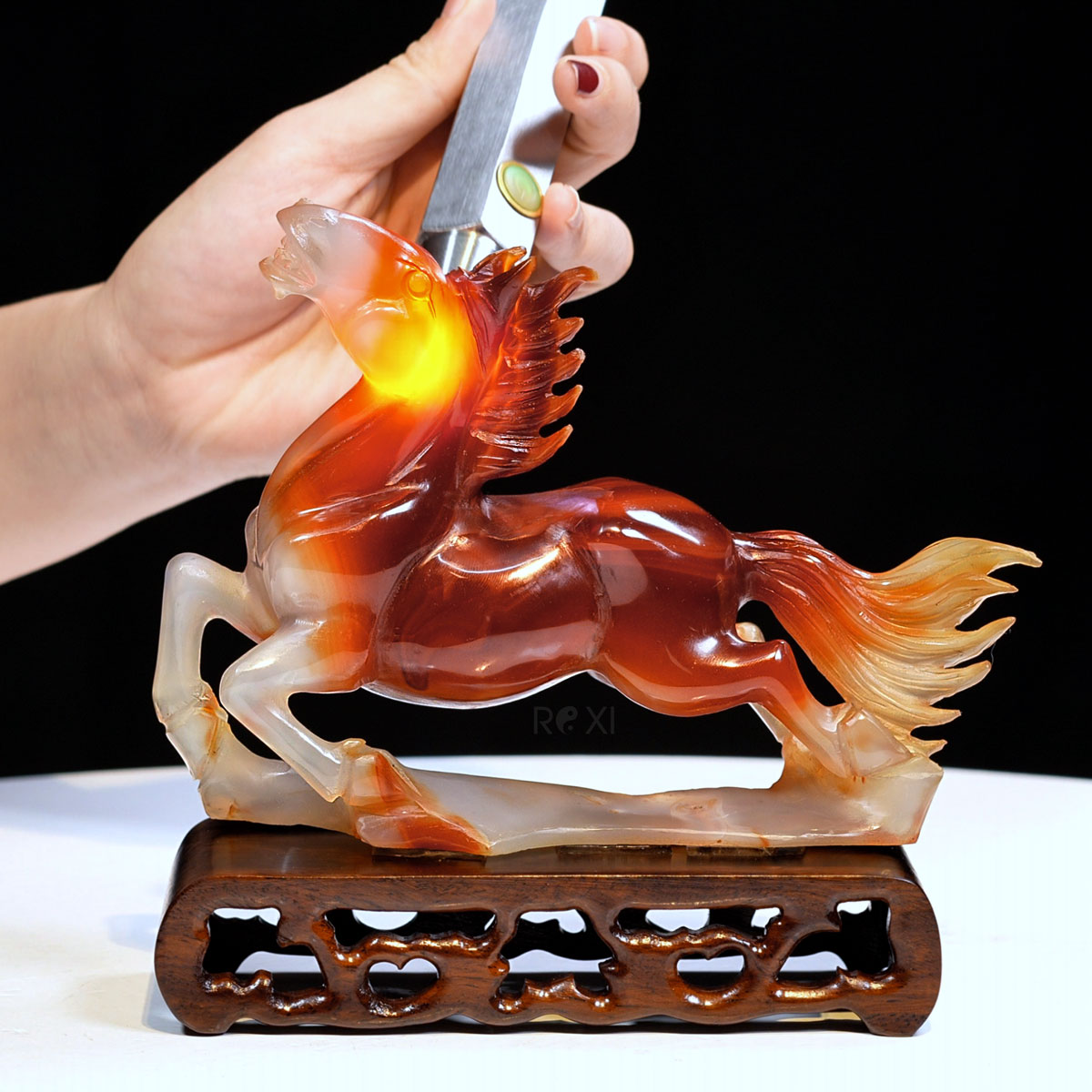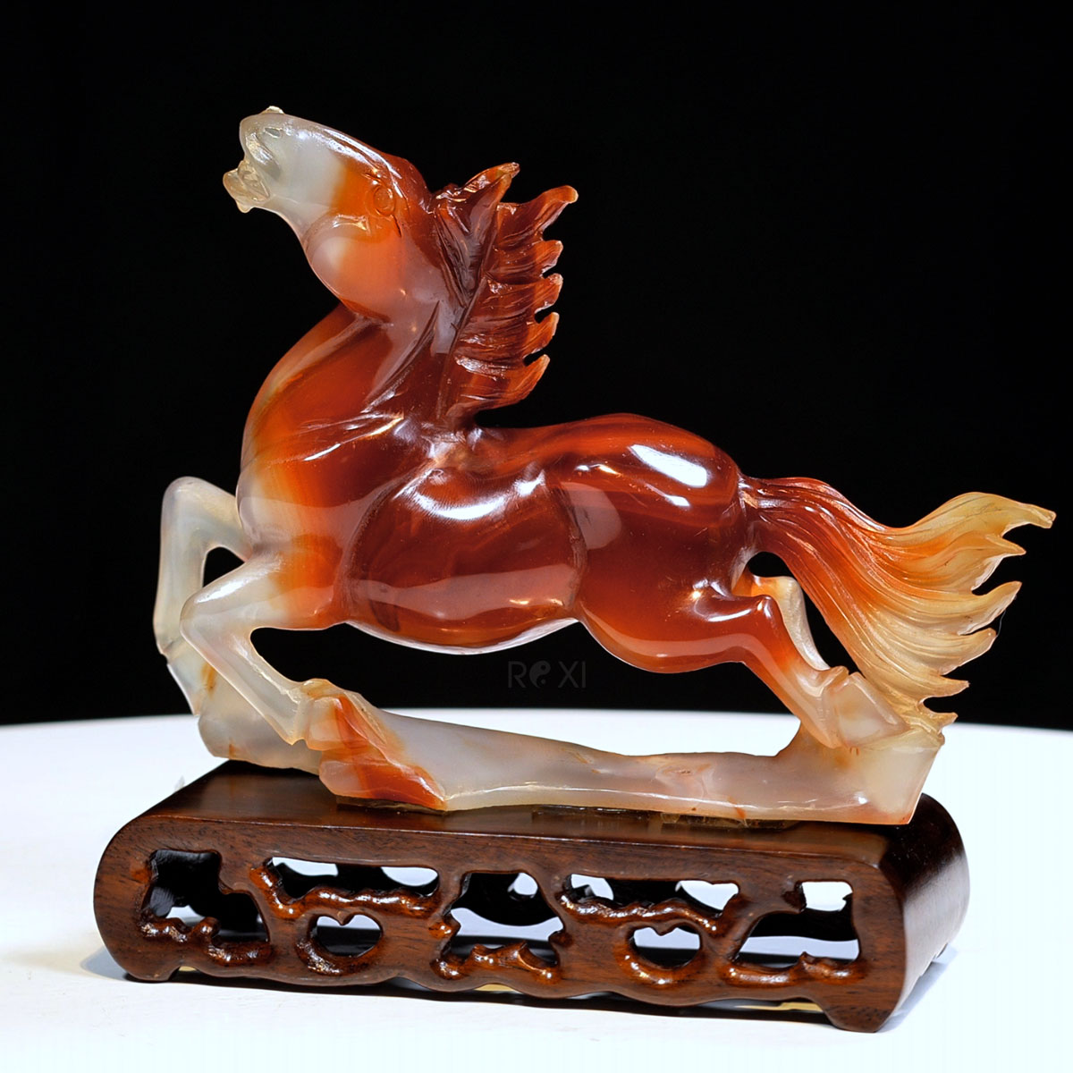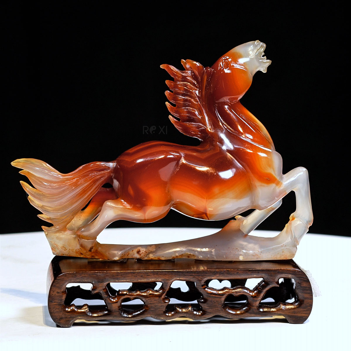 Tượng Nhất mã phi thiên - Tượng Ngựa ngọc mã não 0,6kg