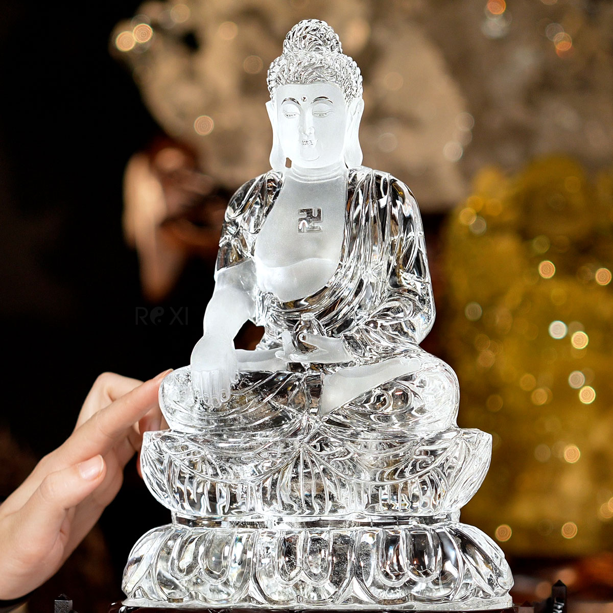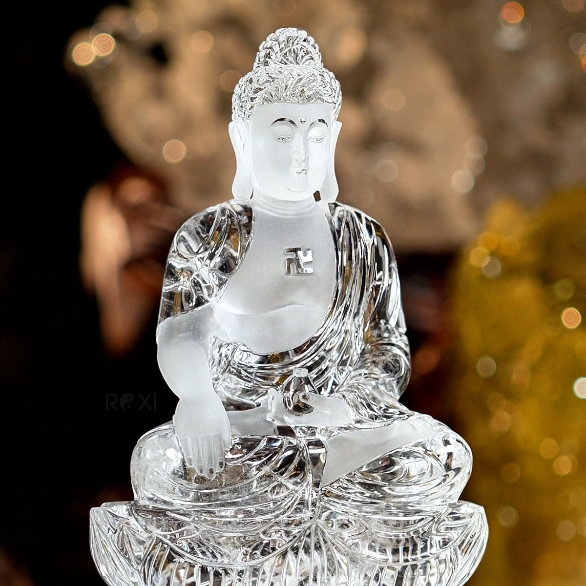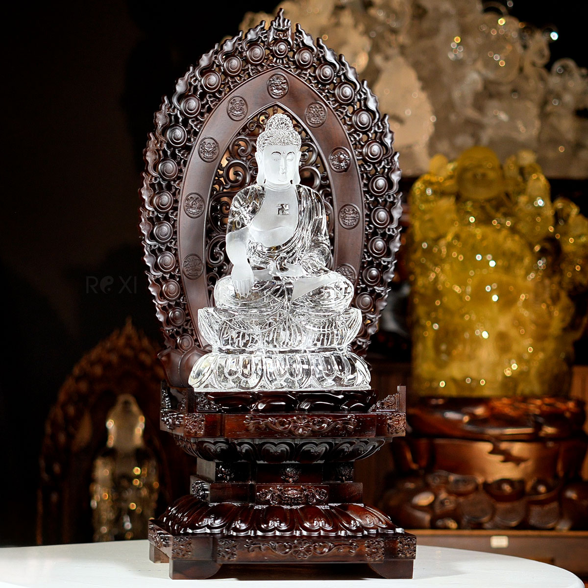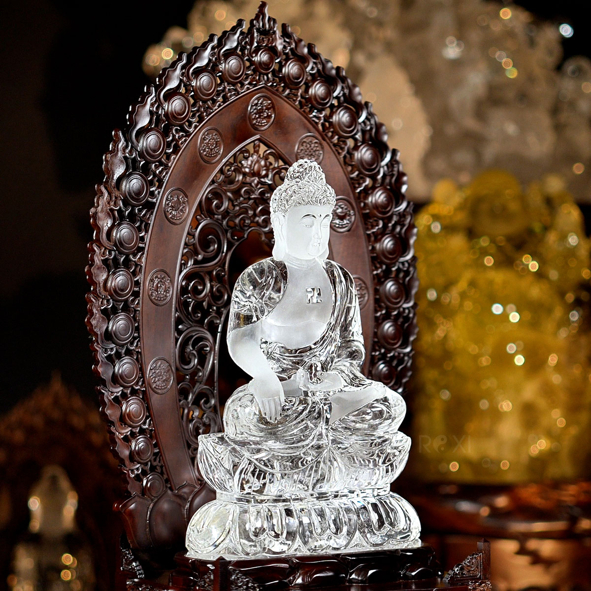 Tượng Phật A Di Đà bằng thạch anh trắng có thể được đặt tại nhiều không gian khác nhau,