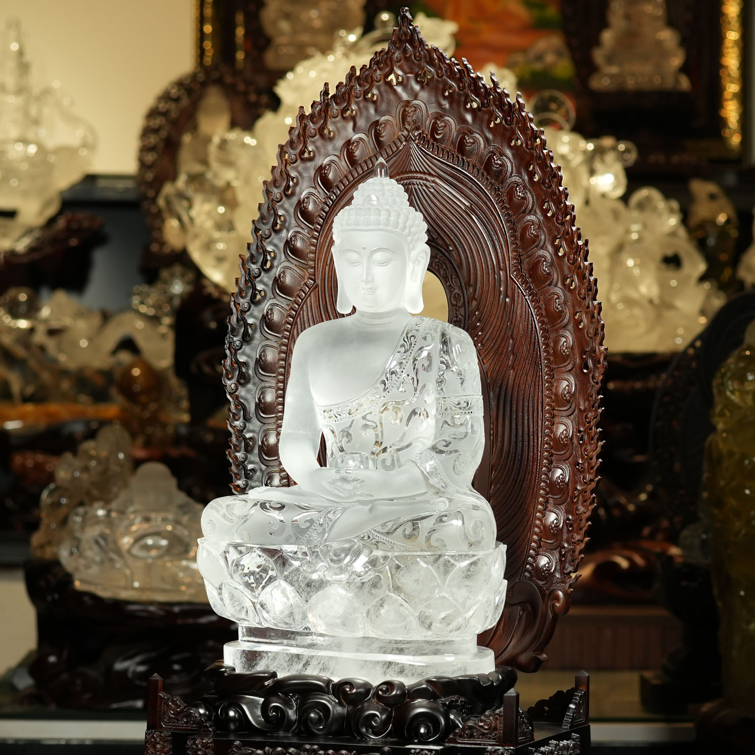 Tượng thích ca mâu ni bằng thạch anh trắng tự nhiên