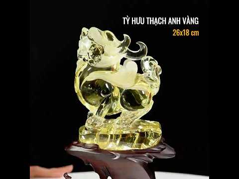 Tỳ hưu là một loài thần thú, hội tụ nhiều nét đẹp của các linh vật khác, toát lên vẻ oai nghiêm và đầy sức mạnh. Tượng tỳ hưu được chế tác từ thạch anh vàng tự nhiên, sự kết hợp giữa kĩ thuật chạm khắc kinh bong sắc nét với khối thạch anh cao cấp đạt độ trong độ tinh khiết cao tạo nên tác phẩm có giá trị cao.