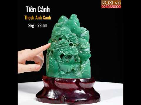Tác phẩm bồng lai tiên cảnh được chế tác từ thạch anh xanh tự nhiên.